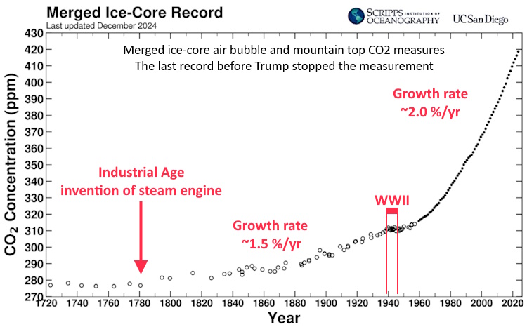 World history of economically driven increase in atmospheric CO2,. From The Scripps station on Mona Loa and the South Pole, that the Trump Admin terminated the funding for |