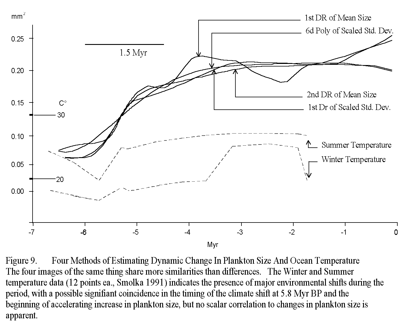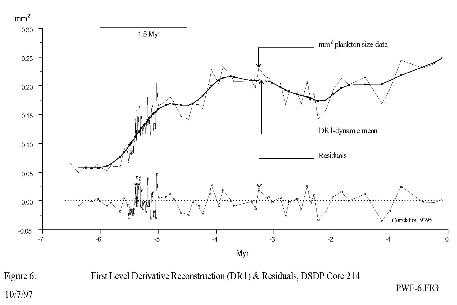 Flow structures, dynamic acceleration and decelleration, found in a 6 million year record of plankton fossil evolution.