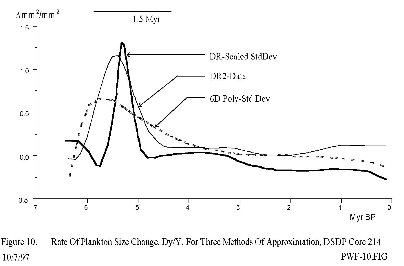 Flow structures, dynamic acceleration and decelleration, found in a 6 million year record of plankton fossil evolution.